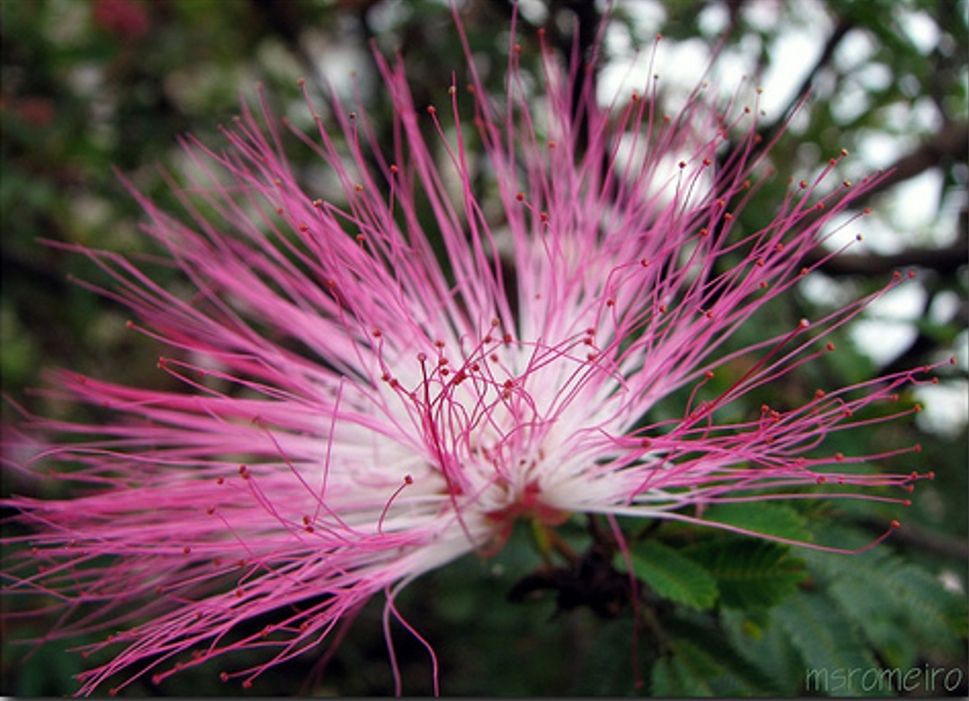 Caliandra é uma flor do cerrado, da família das leguminosas. É originária do Brasil e cresce em arbustos de até 4 metros. As flores aparecem na primavera e no verão é um arbusto de folha perene procedente das regiões tropicais das Américas. Ocorre um processo natural de fechamento das folhas durante a noite. Suas flores são muito graciosas em forma de pompom em cores que vão do branco ao vermelho. Surgem frutos no verão após a floração primaveril.